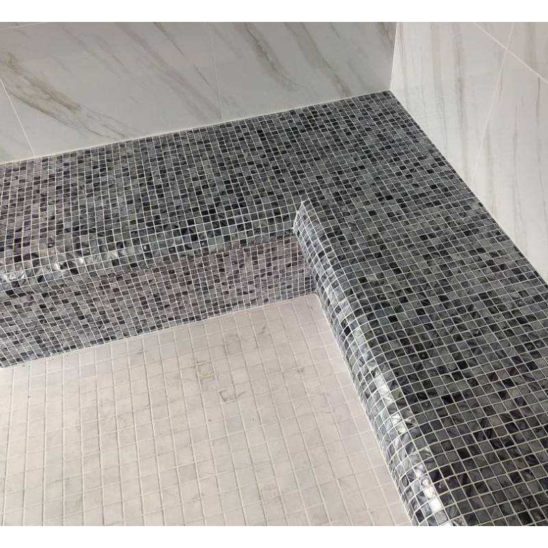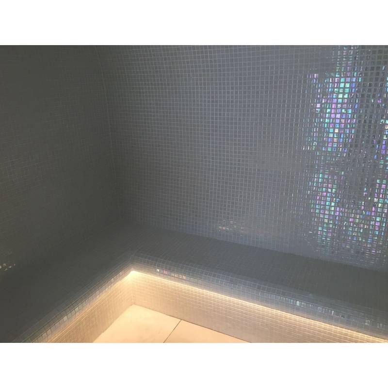 - Option choix de mosaïque sur murs, banquettes et plafond. La mosaïque est fournie avec une colle à forte adhérence et des joints flexibles résistants à la chaleur et à l’eau,