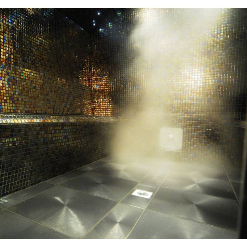 Le générateur de vapeur possède une cuve en acier inoxydable, une électrovanne de remplissage, une buse de vapeur avec évaporateur d’essence aromatique, un système de vidange automatique et des résistances en alliage longue durée avec enrobage en téflon pour réduire le dépôt de tartre.