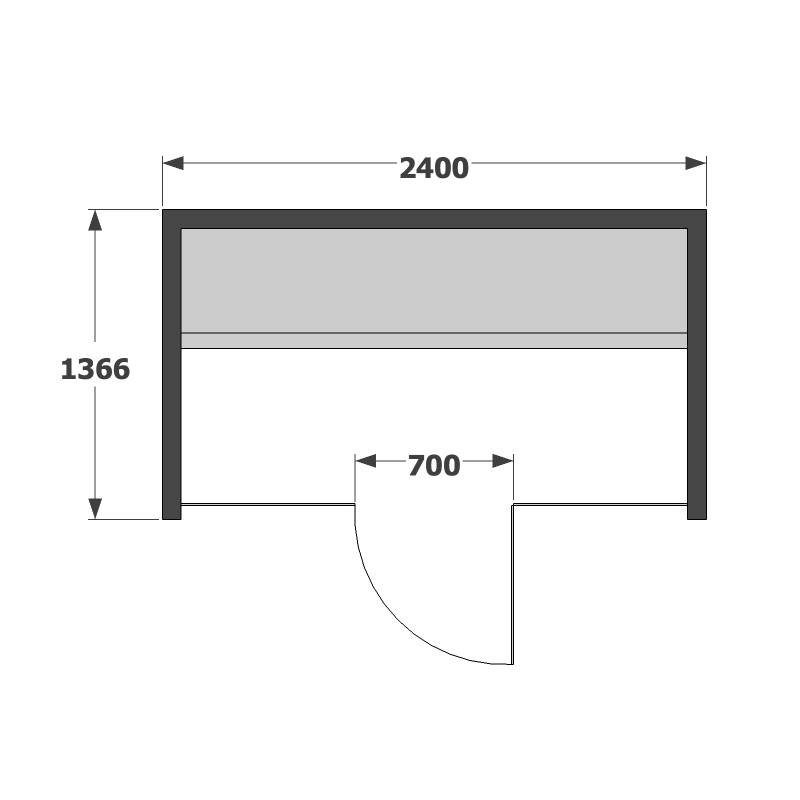 - Option Façade verre trempé et feuilleté 10mm, joint d’étanchéité, charnières et poignée chromées, entrée d’air sous la porte (porte réversible 69cm x (h)191cm),