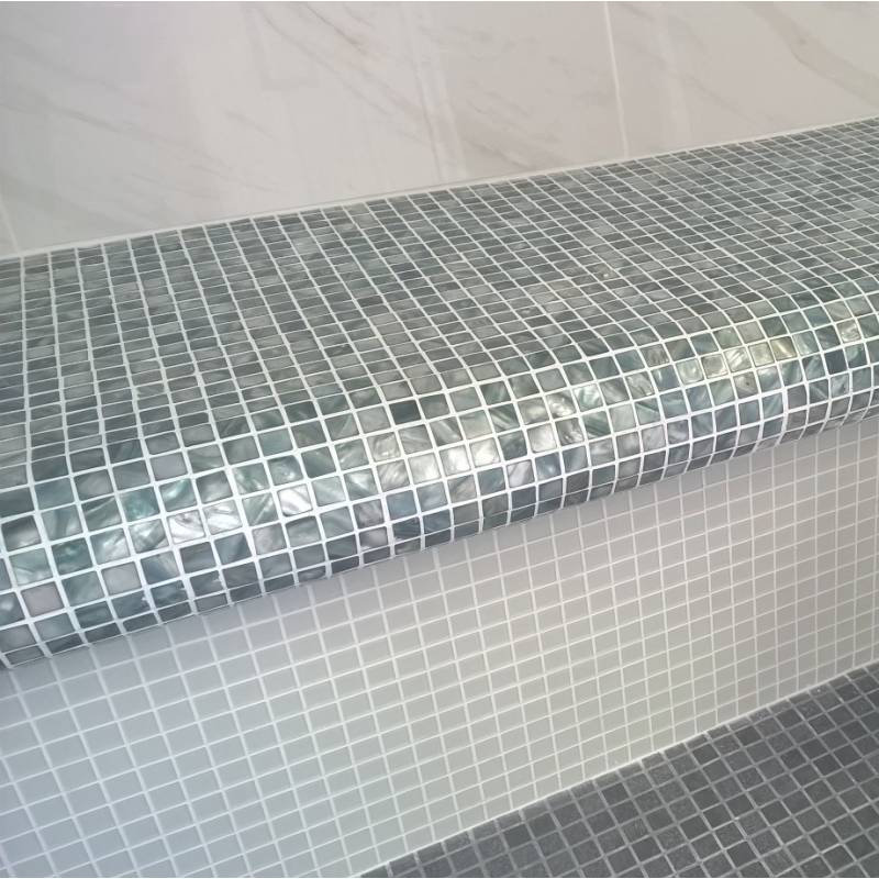 - Option choix de mosaïque sur murs, banquettes et plafond. La mosaïque est fournie avec une colle à forte adhérence et des joints flexibles résistants à la chaleur et à l’eau,