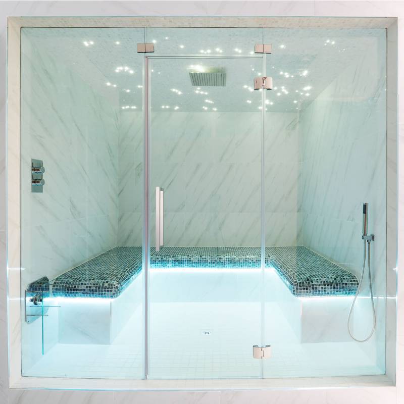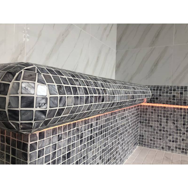 - Option choix de mosaïque sur murs, banquettes et plafond. La mosaïque est fournie avec une colle à forte adhérence et des joints flexibles résistants à la chaleur et à l’eau,