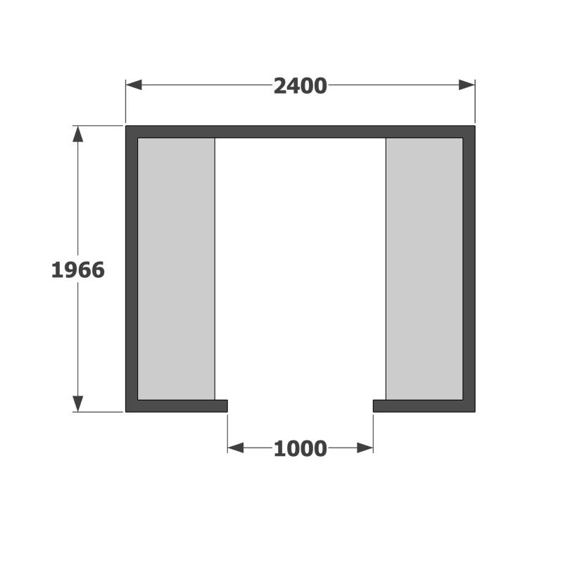Prévoir un emplacement aux dimensions hors-tout de la cabine avec un espace supplémentaire de 2,5cm minimum tout autour de la cabine. Elle peut être entièrement montée de l’intérieur.