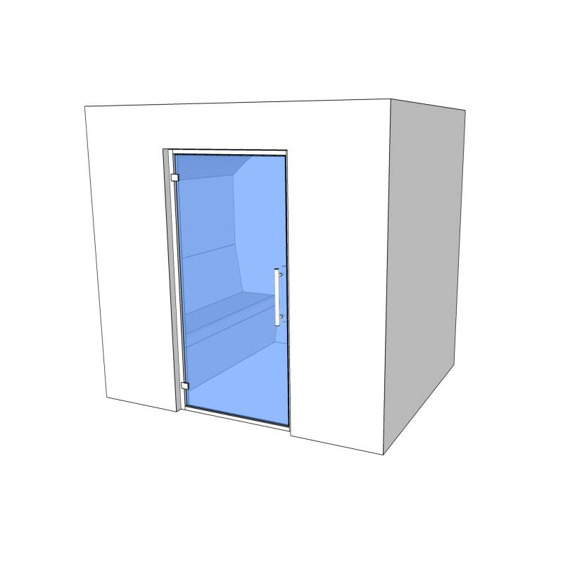 - Option Façade en verre Sécurit trempé et feuilleté 10mm, porte 69cm x (h)191cm, joint d’étanchéité, charnières et poignée chromées, entrée d’air sous la porte (porte réversible),