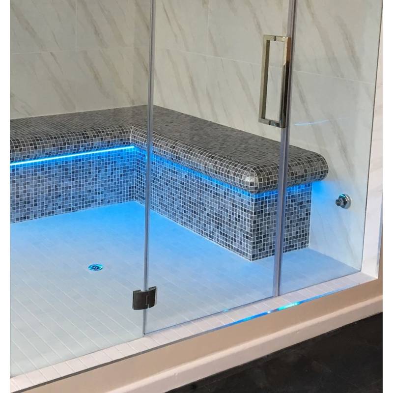- Option choix de mosaïque sur murs, banquettes et plafond. La mosaïque est fournie avec une colle à forte adhérence et des joints flexibles résistants à la chaleur et à l’eau,