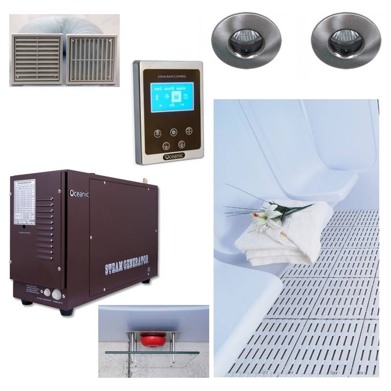 Prévoir un local technique pour le générateur de vapeur dans un endroit sec, à moins de 5m de la cabine avec alimentation/évacuation d’eau et alimentations électriques.